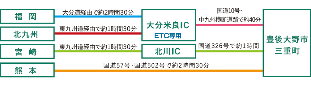 (各見どころは三重町駅ほかJR豊肥本線沿線に点在しています。)