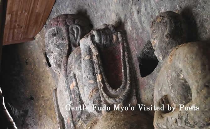 The Inukai Sekibutsu is carved into ignimbrite formed nearly 90,000 years ago by pyroclastic flows from the Aso volcano, It is believed to have been carved during the Kamakura period. Though the carving is of Fudo Myo’o, this one gives him a uniquely gentle expression. There is a stone monument of the poem which Famous poet Yosano Akiko wrote on her visit here.