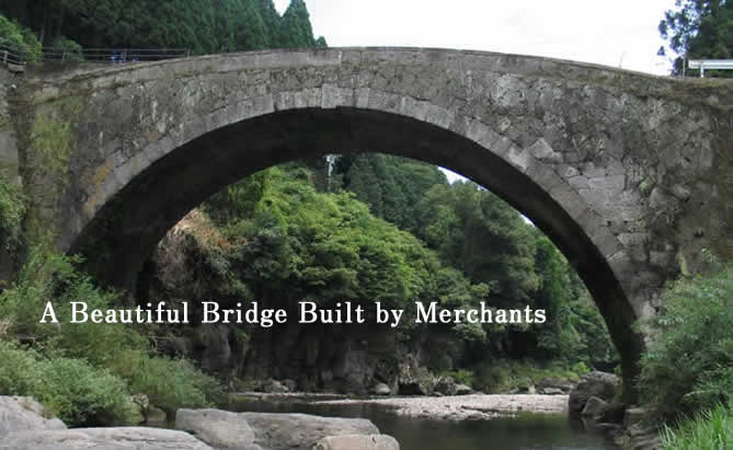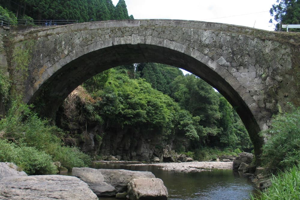The name of this bridge comes from how it appears like a rainbow arching over the valley. It was completed in 1824, during the late Edo period. At the time it was the largest stone bridge in Japan, built by joint funding of local merchants who sought a solution to overcome the difficult route from Miemachi in the Usuki Domain to the town around Usuki Castle. This sturdy, beautiful work of architecture is designated as an Important Cultural Property of Japan.