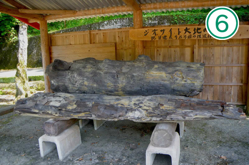 旧三重南小学校(現あかい屋根の郷)の校庭に保存されている木の幹は、近くの沢の谷底に埋まっていたものです。阿蘇火山からの火砕流で蒸し焼きにされたものと考えられています。